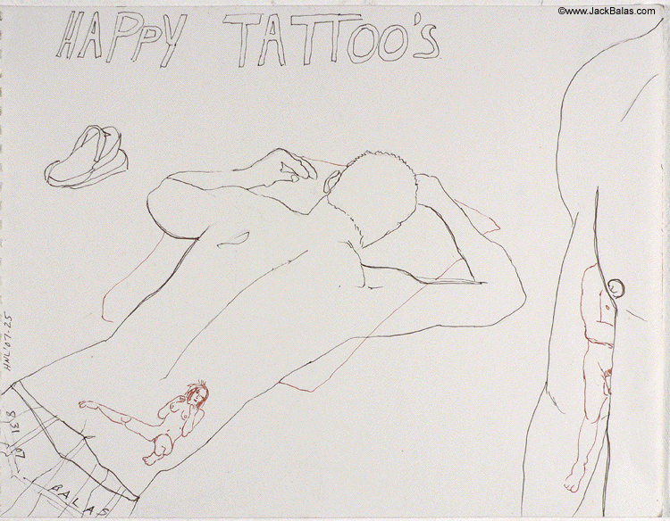Jack Balas, 2007; Honolulu Drawing #25, HAPPY TATTOO'S; ink on paper, approx. 9" x 12"