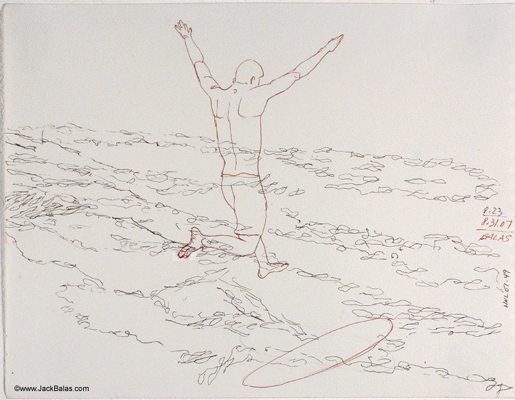 Jack Balas, 2007; Honolulu Drawing #49; Untitled (Jump); ink on paper, approx. 9" x 12"