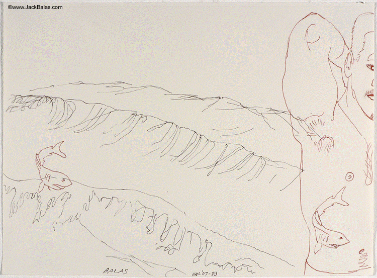 Jack Balas, 2007; Honolulu Drawing #83 (Untitled) (Shark Tattoo); ink on paper, approx. 9" x 12"