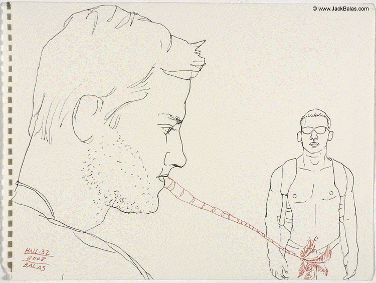 Jack Balas, 2008; Honolulu Drawing #32, Untitled (palm, marine); ink on paper, approx. 9" x 12"