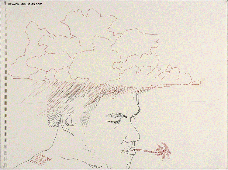 Jack Balas, 2008; Honolulu Drawing #44, Untitled (cloudhead); ink on paper, approx. 9" x 12"
