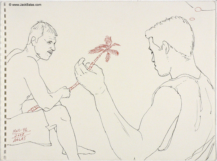 Jack Balas, 2008; Honolulu Drawing #46, Untitled (palm grab); ink on paper, approx. 9" x 12"