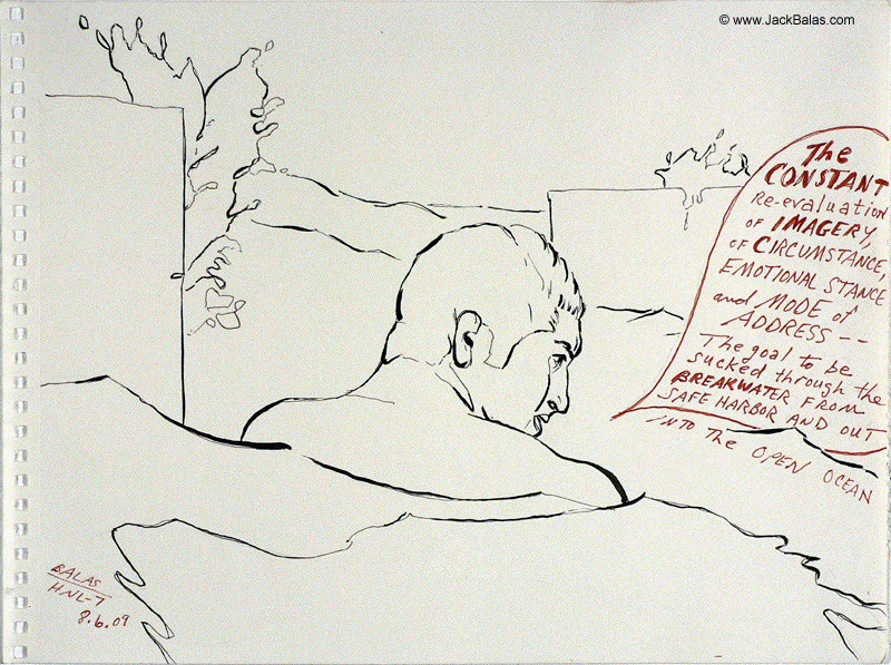 Jack Balas, 2009; Honolulu Drawing #07; THE BREAKWATER; ink on paper, 9" x 12"