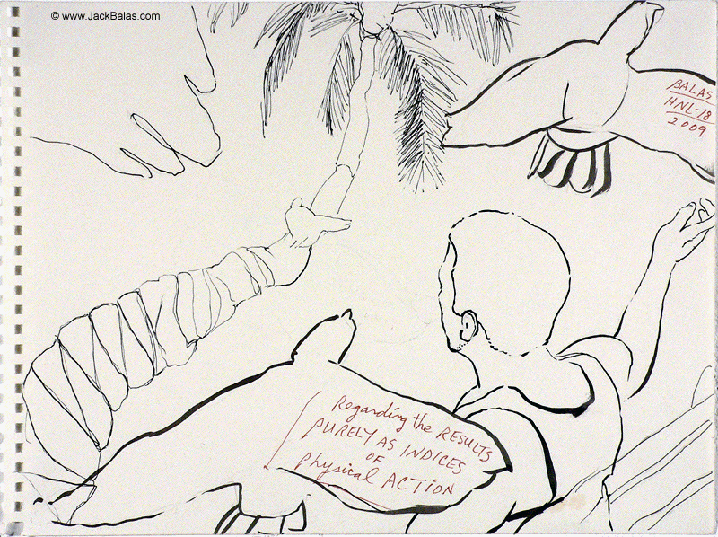 Jack Balas, 2009; Honolulu Drawing #18; INDICES OF PHYSICAL ACTION; ink on paper, 9" x 12"