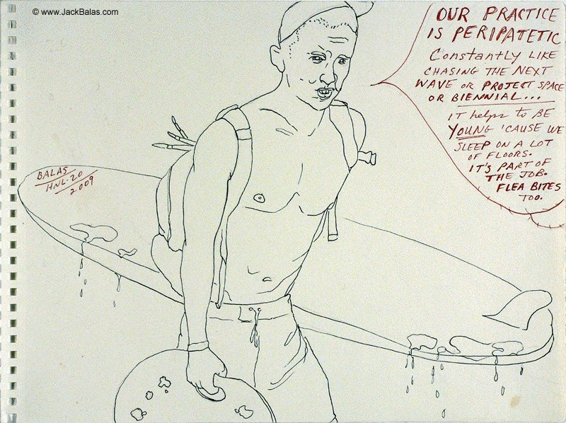 Jack Balas, 2009; Honolulu Drawing #20; PERIPATETIC; ink on paper, 9" x 12"
