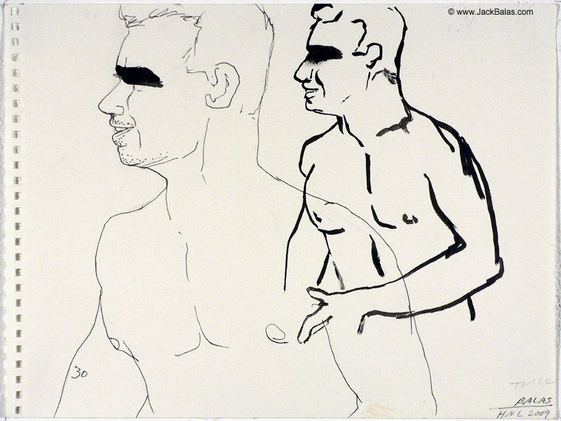 Jack Balas, 2009; Honolulu Drawing #30, TWICE; ink on paper, 9" x 12"