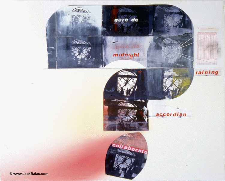 Jack Balas, 1999; GARE DE MIDNIGHT; silkscreen, enamel and and collage on paper, 32" x 40" (unique)