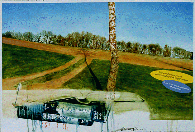 Jack Balas, VAN GOGH'S LETTERS, 2002; oil/paper with inlaid digital text; 26"x39"