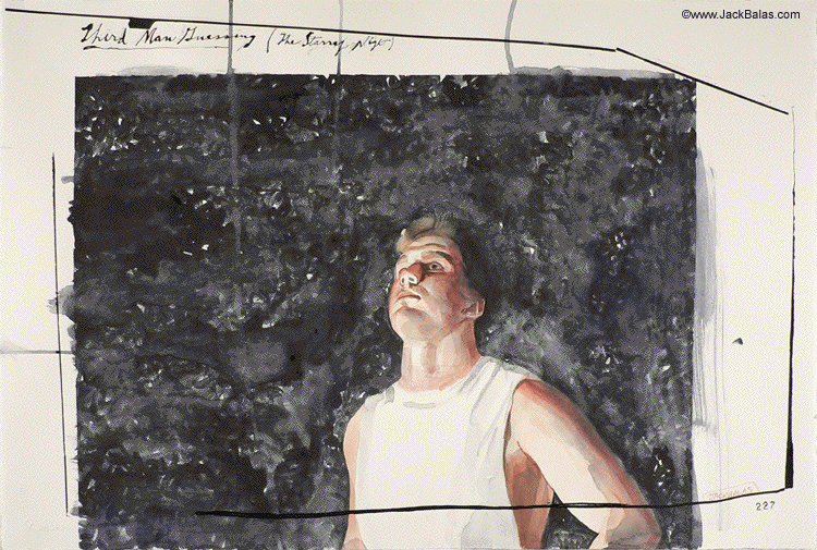 Jack Balas, 2006; THIRD MAN GUESSING (THE STARRY NIGHT) (#227); watercolor and ink on paper; 15" x 23"
