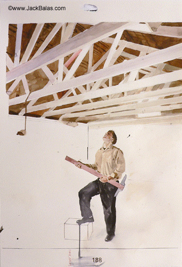 Jack Balas, 2006; Untitled (T-square) (#188); watercolor and ink on paper; 23" x 15"
