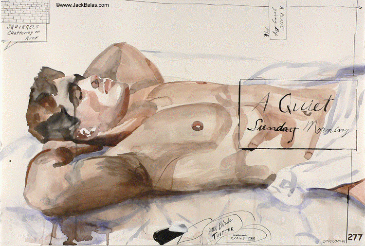 Jack Balas, 2007; A QUIET SUNDAY MORNING (#277); watercolor and ink on paper; 15" x 23"