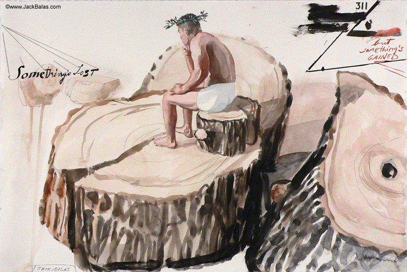 Jack Balas, 2007; SOMETHING'S LOST, BUT SOMETHING'S GAINED (THE TREE) (#311); watercolor, ink and acrylic on paper, 15" x 23"