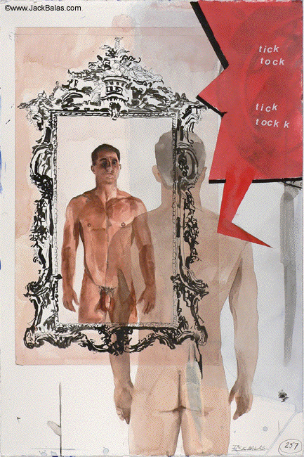 Jack Balas, 2007; TICK TOCK (#257); watercolor, ink and acrylic on paper; 23" x 15"