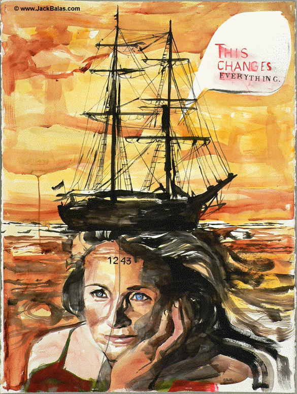 Jack Balas, 2015; THIS CHANGES EVERYTHING (#1243); watercolor and acrylic on paper, 30" X 22"