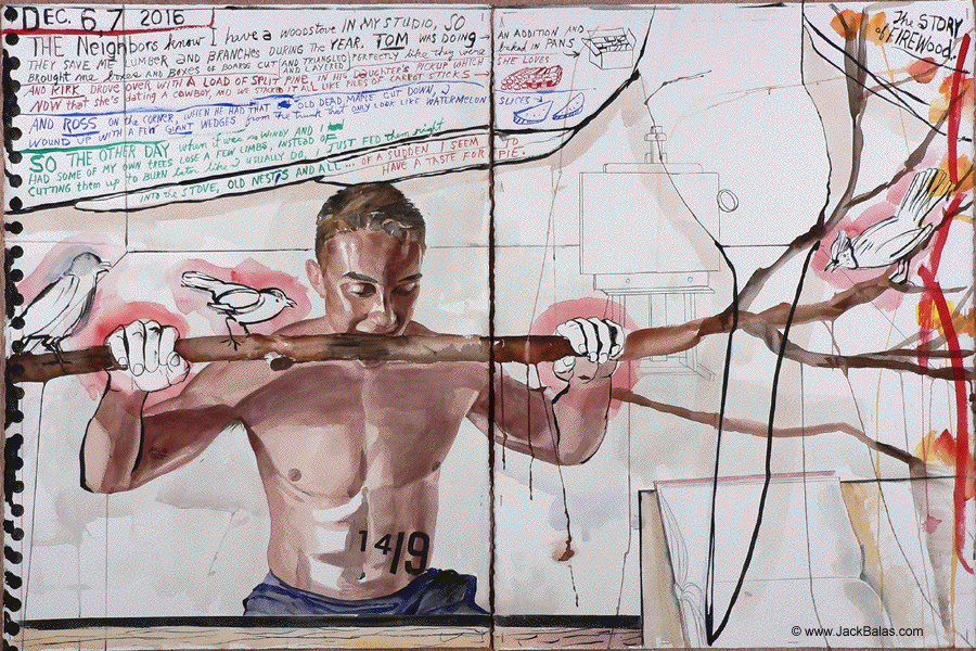 FIREWOOD (#1419); watercolor and ink on 2 paper panels, 30"