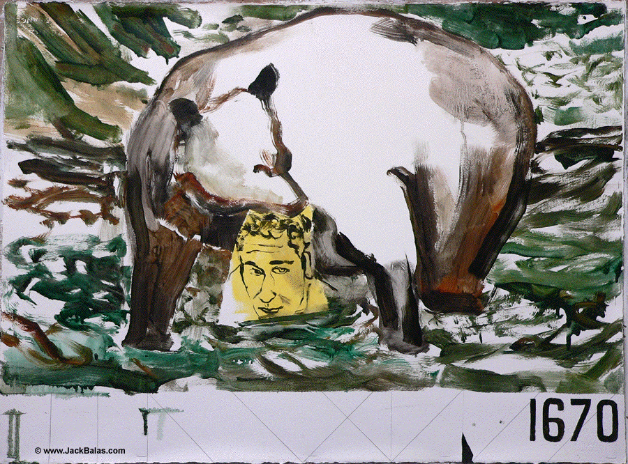 Jack Balas, 2018; UNTITLED (BEAR) (#1671); oil on gessoed paper, 22" x 30"