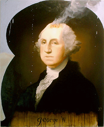 © Wes Hempel & Jack Balas, 2003; GEORGE W. (#37); oil and enamel/ wood; 48" x 40"