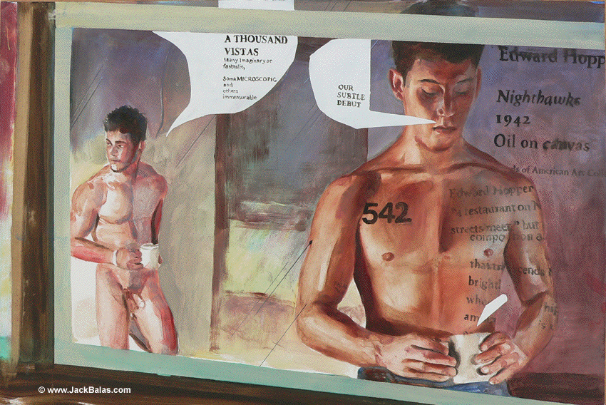 Jack Balas, 2011; EDWARD HOPPER NIGHTHAWKS (#542) (Muse Museum series); oil on paper; 15" x 22.5"