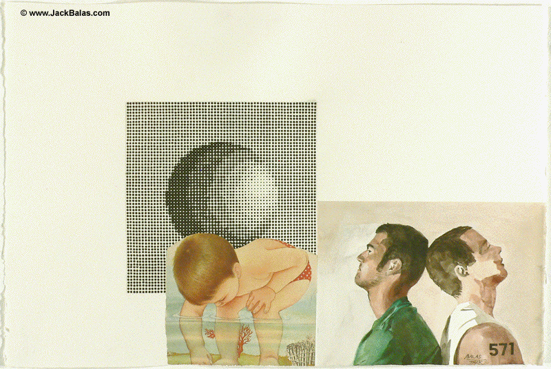 Jack Balas, 2011; DESIGN PLATE: BEACHBALL (#571); watercolor and ink on paper, with collaged commercial litho; 15" x 22"