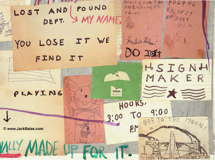 Jack Balas, 2011; OUR NEW PRESIDENT KENNEDY (#575); ink on paper with collage of various drawings & notes c. 1960's; 30" x 22"