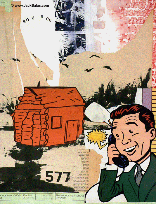 Jack Balas, 2011; SOURCE (#577); acrylic silkscreen and ink on paper with collage of drafting plates and other drawings; 33" x 26"