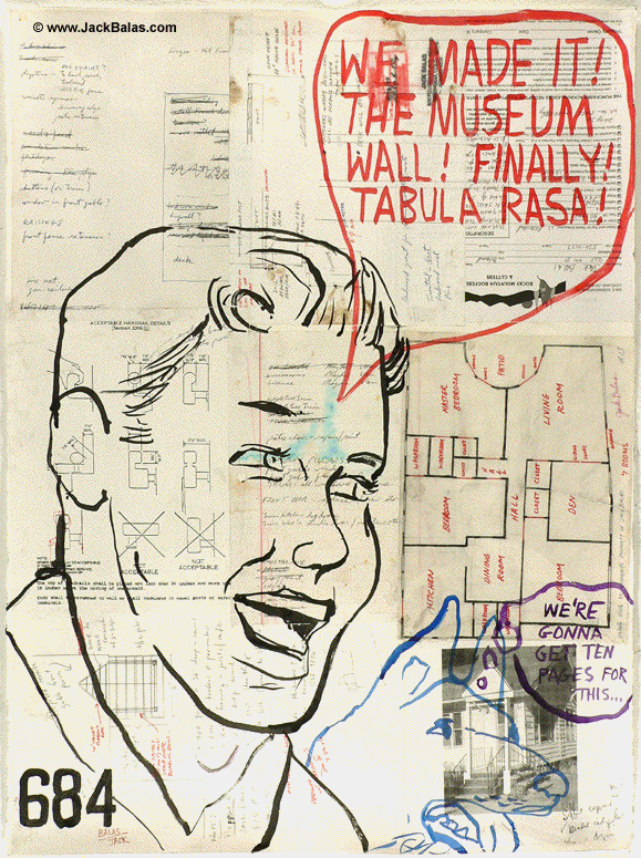JACK BALAS, 2011; TABULA RASA (#684); ink on collaged materials, 30" x 22.5"