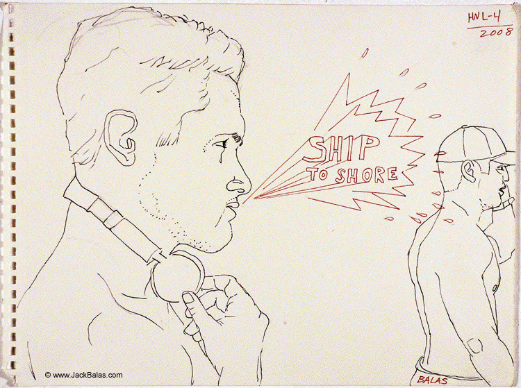 Jack Balas, 2008; Honolulu Drawing #4, SHIP TO SHORE; ink on paper, approx. 9" x 12"