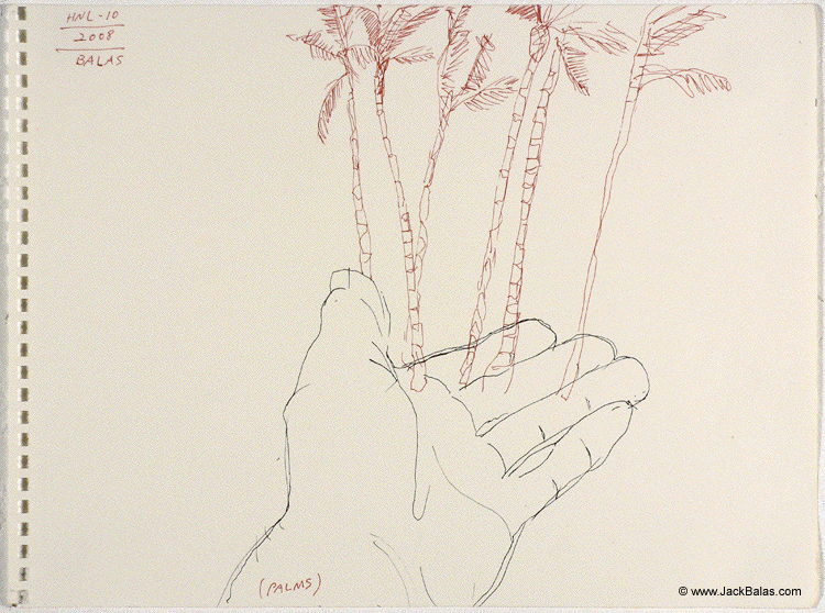 Jack Balas, 2008; Honolulu Drawing #10, PALMS; ink on paper; approx. 9" x 12"