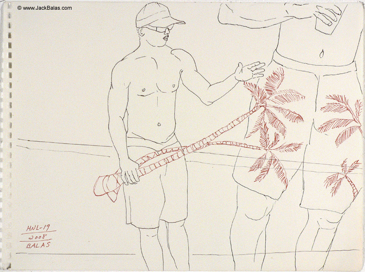 Jack Balas, 2008; Honolulu Drawing # 19, Untitled (palm shorts); ink on paper, 9" x 12"