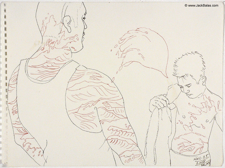 Jack Balas, 2008; Honolulu Drawing 2008 # 25, Untitled (wave tattoos)