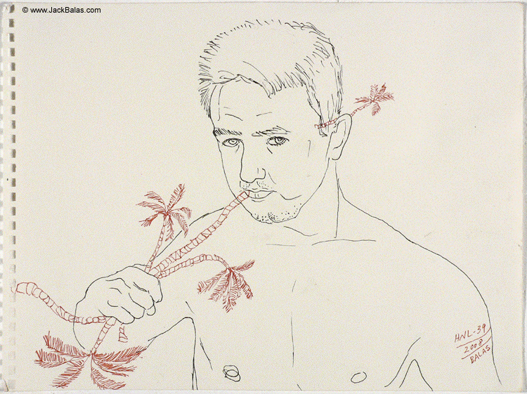 Jack Balas, 2008; Honolulu Drawing #39, Untitled (palm chewer); ink on paper, approx. 9" x 12"