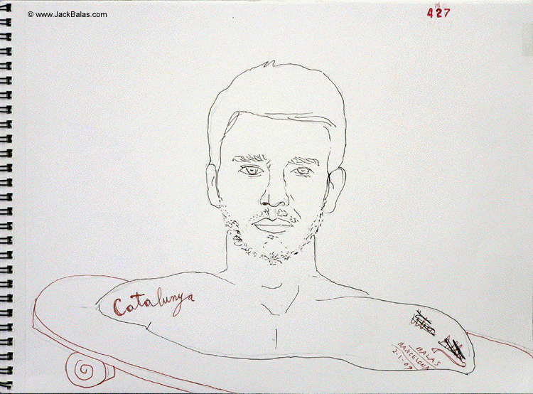 Jack Balas, 2009; CATALUNYA (from the series DIBUJOS DE BARCELONA); ink and pencil on paper; 9" x 12"