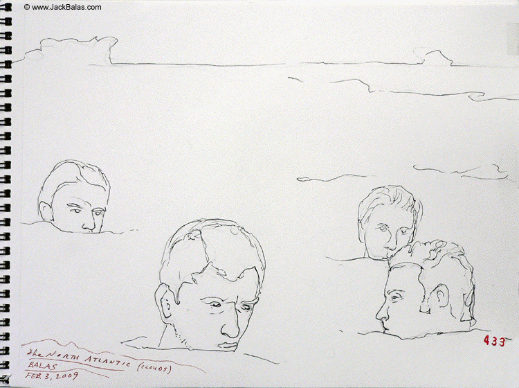 Jack Balas, 2009; THE NORTH ATLANTIC (CLOUDS) (from the series DIBUJOS DE BARCELONA); ink and pencil on paper; 9" x 12"