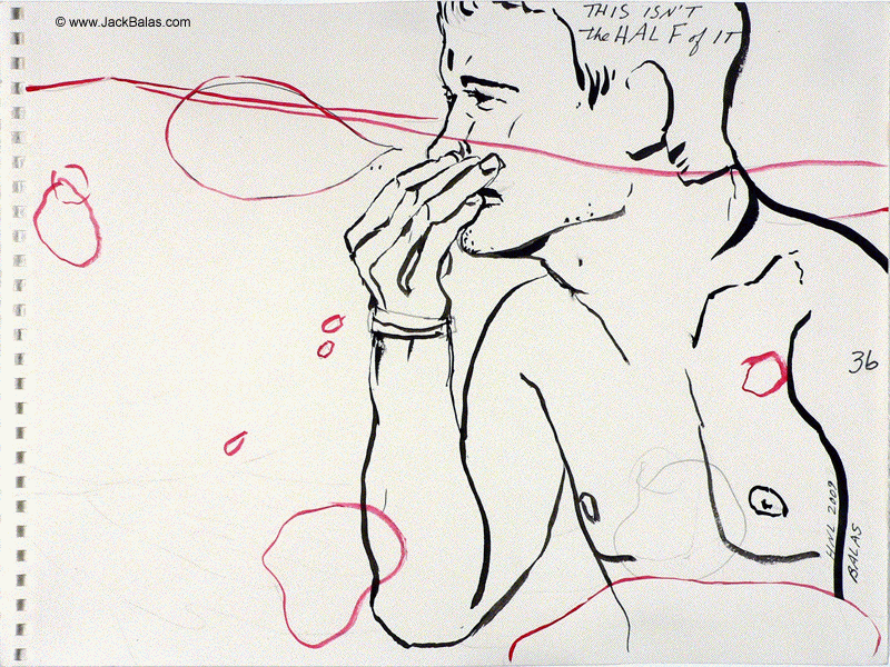 Jack Balas, 2009; Honolulu Drawing #36; THIS ISN'T THE HALF OF IT; ink on paper, 9" x 12"