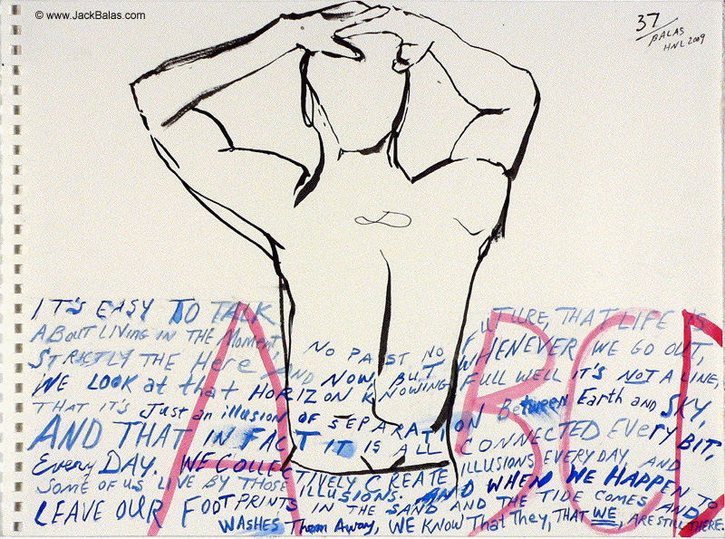 Jack Balas, 2009; Honolulu Drawing #37, IT'S EASY TO TALK; ink on paper, 9" x 12"
