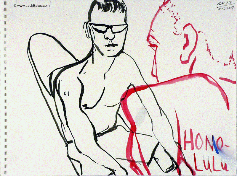 Jack Balas, 2009; Honolulu Drawing #41; HOMO - LULU; ink on paper, 9" x 12"