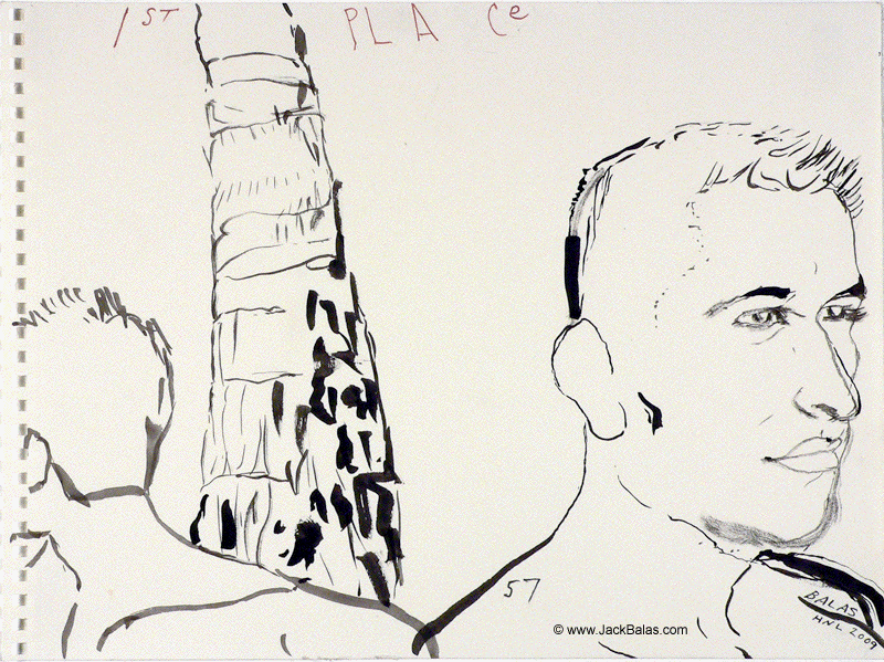 Jack Balas, 2009; Honolulu Drawing #57, FIRST PLACE; ink on paper, 9" x 12"