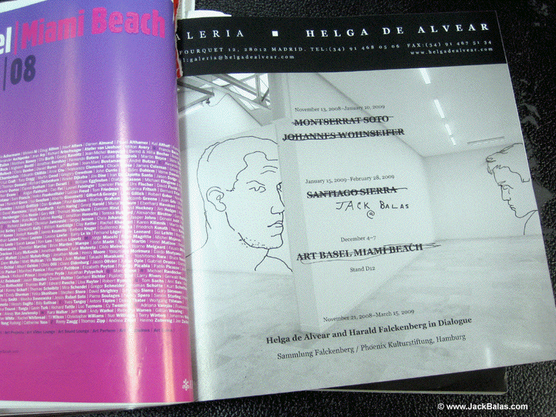 Jack Balas, 2009; JACK BALAS @ HELGA DE ALVEAR; ink on magazine page, ArtForum, December 2008