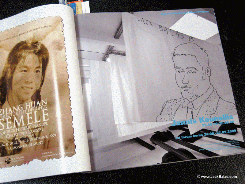 Jack Balas, 2009; JACK BALAS @ JANNIS KOUNELLIS; ink on magazine page, ArtForum, September 2009