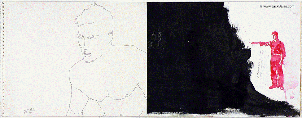 Jack Balas, 2009; UNTITLED (RED POINTER) (#09-76); ink and acrylic on paper; 11" x 29"