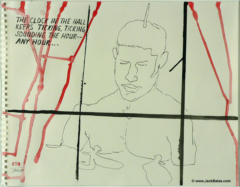 Jack Balas, 2012 THE CLOCK IN THE HALL (#850); ink on paper, 11" x 14"