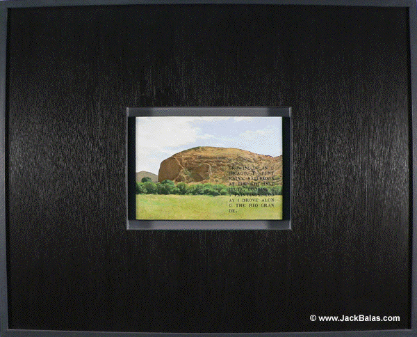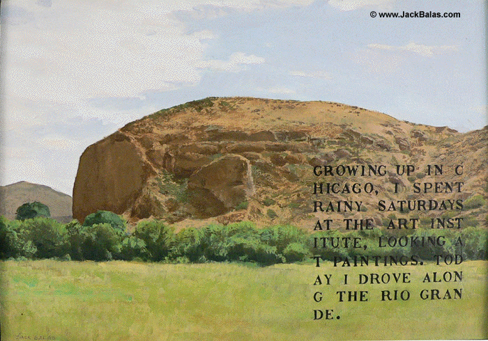Jack Balas, 1990; TODAY I DROVE ALONG THE RIO GRANDE; oil on wood panel, approx. 10" x 14"