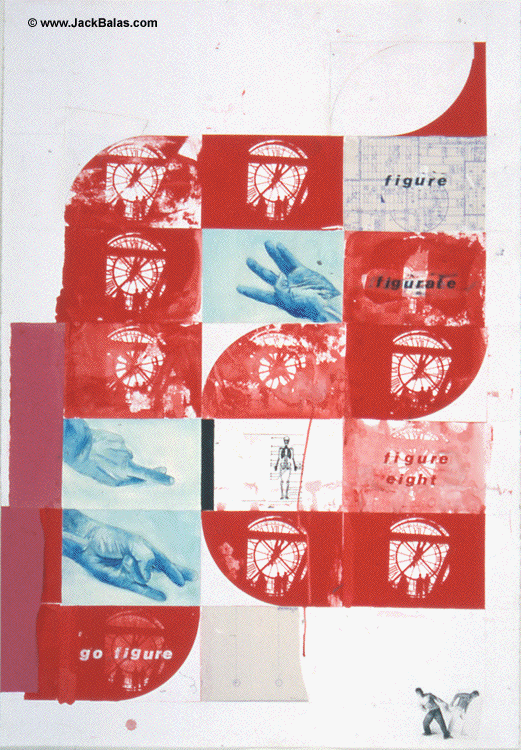 Jack Balas, 1999; GO FIGURE; oil, silkscreen & collage on paper, 44" x 30" (unique)