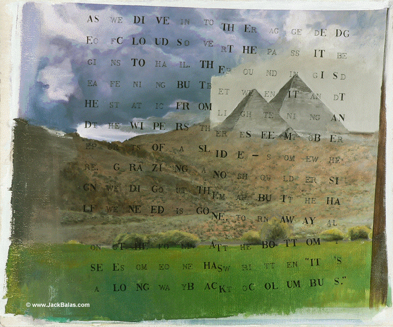 Jack Balas, 1992; IT'S A LONG WAY BACK TO COLUMBUS; oil on canvas, 24" x 28"