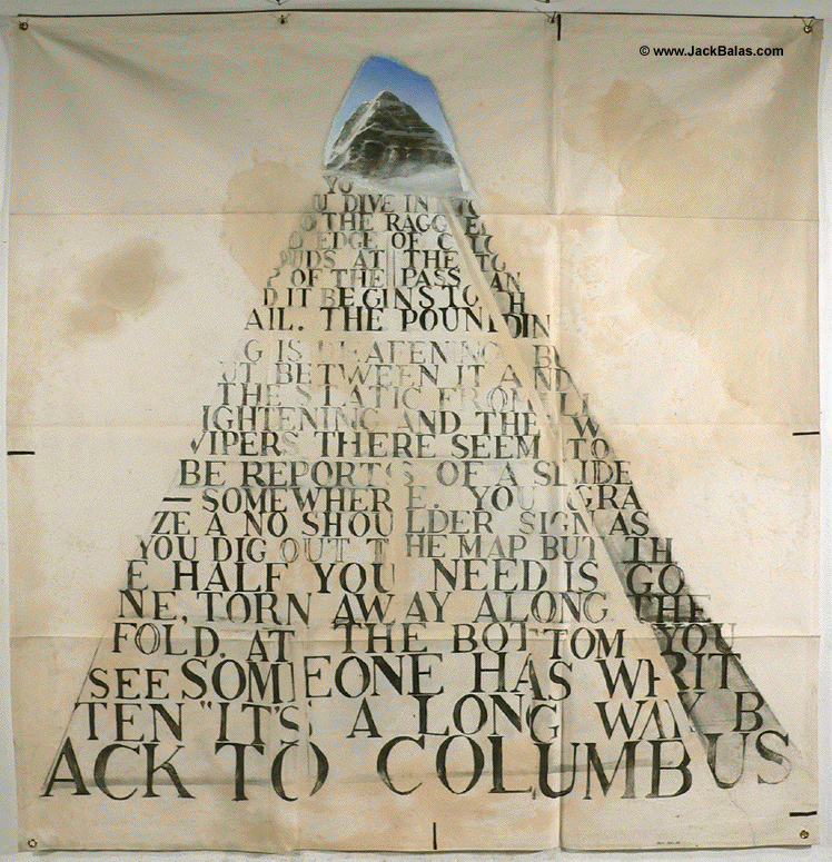 Jack Balas, 1993; REPORTS OF A SLIDE; acrylic and oil on folding canvas; 77" x 74"