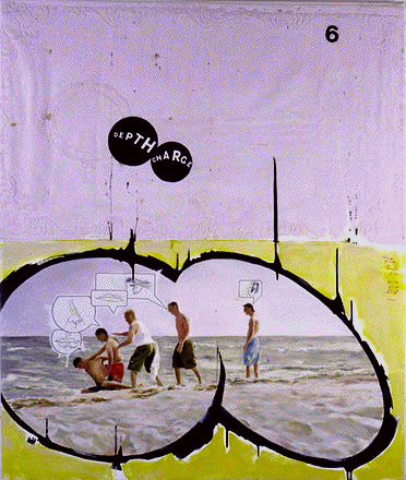 Jack Balas, Depth Charge (#6) 2002; oil, ink & enamel on canvas with bath towel; 48" x 40"