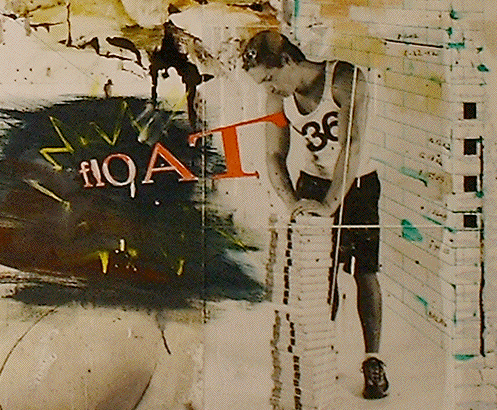 Jack Balas, 2003; FLOAT; oil & enamel on paper mounted to canvas, with ink drawing and B&W photograph; 40"x48"