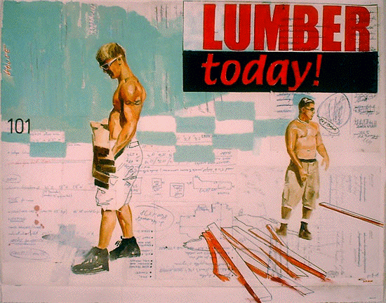 Jack Balas, ©2004; LUMBER TODAY (#101); oil, acrylic, ink, pencil on paper; 23" x 29"