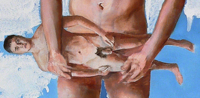 Jack Balas 2005; REHEARSAL (#144); oil, enamel, ink on canvas and collaged manilla filefolders; 38" x 32"