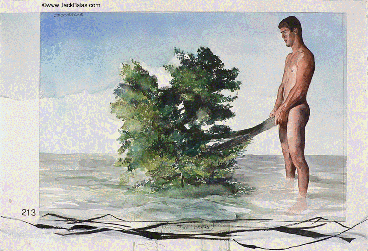 Jack Balas, 2006; THE TRUE CROSS (#213); watercolor, acrylic and ink on paper; 15" x 23"
